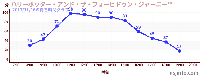 • ハリーポッター・アンド・ザ・フォービドゥン・ジャーニー™$B$N(B2017年11月16日の待ち時間