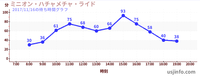 • ミニオン・ハチャメチャ・ライド$B$N(B2017年11月16日の待ち時間