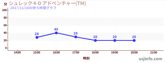 • シュレック 4-D アドベンチャー(TM)$B$N(B2017年11月18日の待ち時間