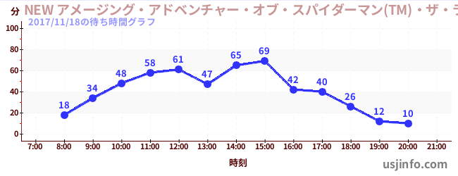 • NEW アメージング・アドベンチャー・オブ・スパイダーマン(TM)・ザ・ライド 4K3D$B$N(B2017年11月18日の待ち時間