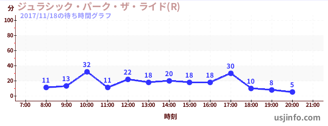• ジュラシック・パーク・ザ・ライド(R)$B$N(B2017年11月18日の待ち時間