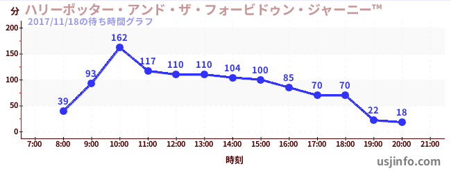 • ハリーポッター・アンド・ザ・フォービドゥン・ジャーニー™$B$N(B2017年11月18日の待ち時間