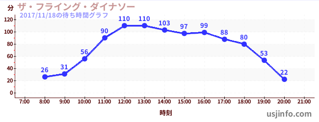 • ザ・フライング・ダイナソー$B$N(B2017年11月18日の待ち時間