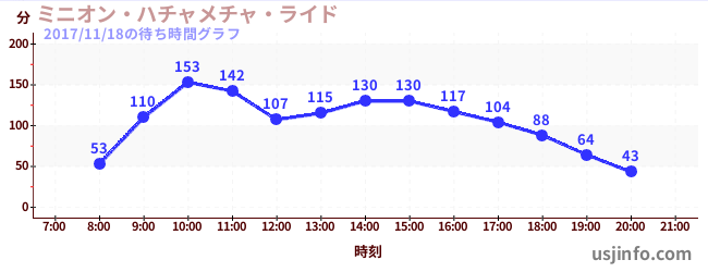 • ミニオン・ハチャメチャ・ライド$B$N(B2017年11月18日の待ち時間