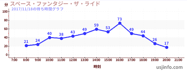• スペース・ファンタジー・ザ・ライド$B$N(B2017年11月18日の待ち時間