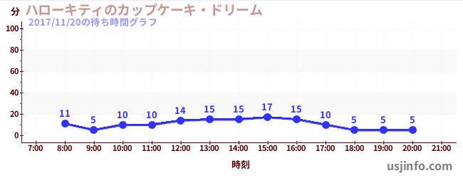• ハローキティのカップケーキ・ドリーム$B$N(B2017年11月20日の待ち時間