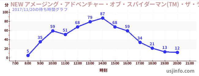 • NEW アメージング・アドベンチャー・オブ・スパイダーマン(TM)・ザ・ライド 4K3D$B$N(B2017年11月20日の待ち時間