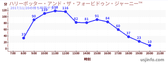• ハリーポッター・アンド・ザ・フォービドゥン・ジャーニー™$B$N(B2017年11月20日の待ち時間