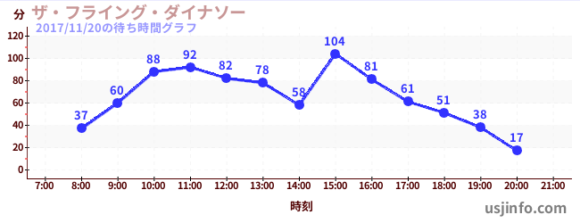 • ザ・フライング・ダイナソー$B$N(B2017年11月20日の待ち時間