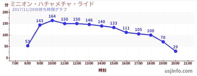 • ミニオン・ハチャメチャ・ライド$B$N(B2017年11月20日の待ち時間