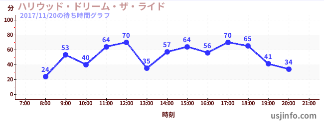 • ハリウッド・ドリーム・ザ・ライド$B$N(B2017年11月20日の待ち時間