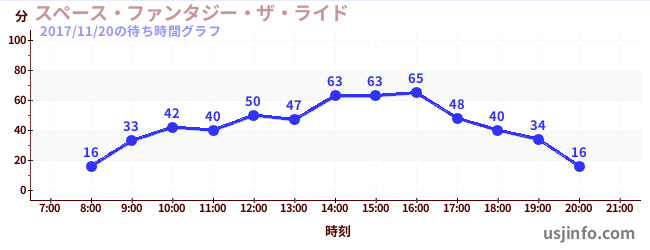 • スペース・ファンタジー・ザ・ライド$B$N(B2017年11月20日の待ち時間