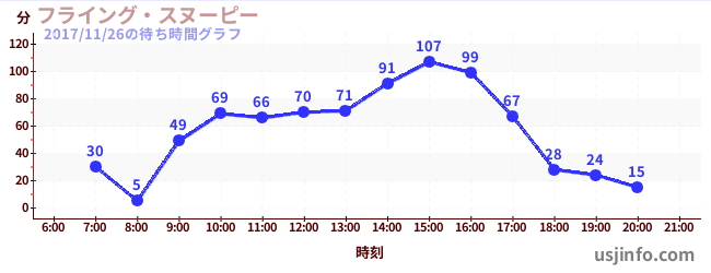 • フライング・スヌーピー$B$N(B2017年11月26日の待ち時間
