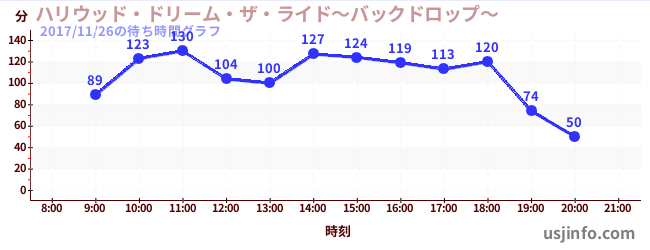• ハリウッド・ドリーム・ザ・ライド〜バックドロップ〜$B$N(B2017年11月26日の待ち時間