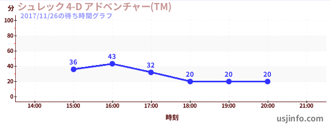 • シュレック 4-D アドベンチャー(TM)$B$N(B2017年11月26日の待ち時間