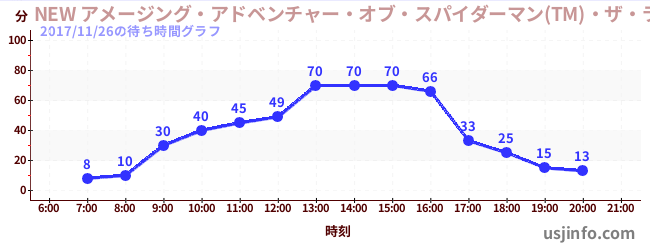 • NEW アメージング・アドベンチャー・オブ・スパイダーマン(TM)・ザ・ライド 4K3D$B$N(B2017年11月26日の待ち時間