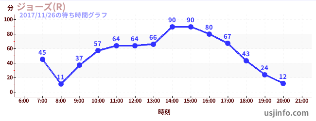 • ジョーズ(R)$B$N(B2017年11月26日の待ち時間
