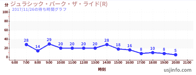 • ジュラシック・パーク・ザ・ライド(R)$B$N(B2017年11月26日の待ち時間