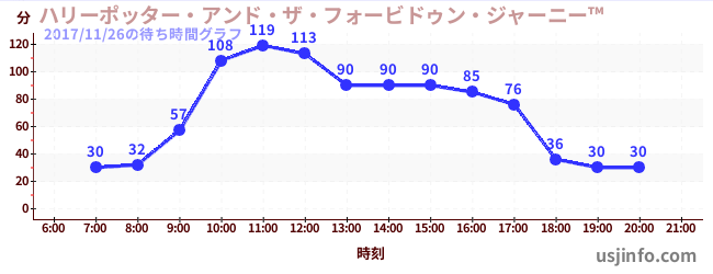 • ハリーポッター・アンド・ザ・フォービドゥン・ジャーニー™$B$N(B2017年11月26日の待ち時間