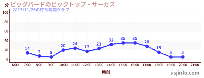 • ビッグバードのビックトップ・サーカス$B$N(B2017年11月26日の待ち時間