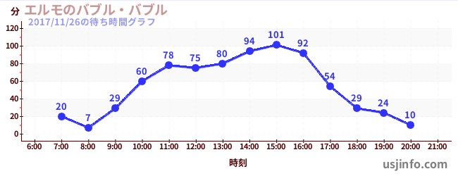 • エルモのバブル・バブル$B$N(B2017年11月26日の待ち時間