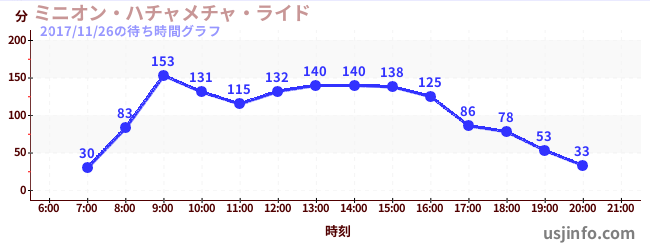 • ミニオン・ハチャメチャ・ライド$B$N(B2017年11月26日の待ち時間