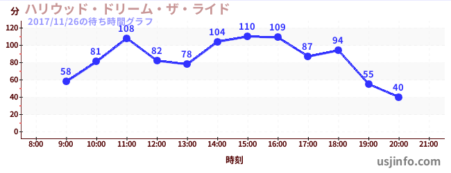 • ハリウッド・ドリーム・ザ・ライド$B$N(B2017年11月26日の待ち時間