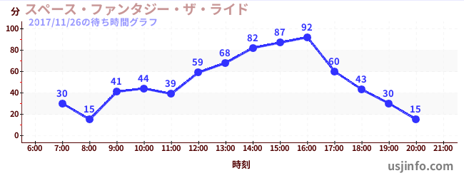 • スペース・ファンタジー・ザ・ライド$B$N(B2017年11月26日の待ち時間