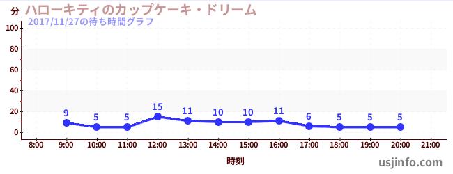 • ハローキティのカップケーキ・ドリーム$B$N(B2017年11月27日の待ち時間