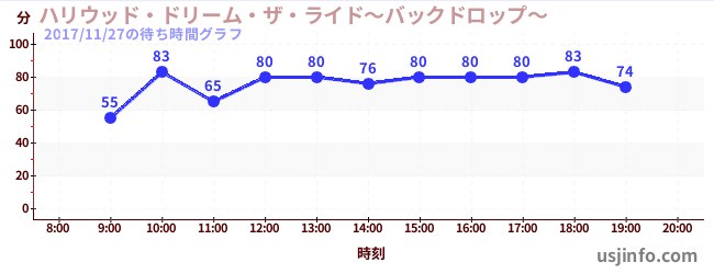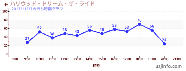 • ハリウッド・ドリーム・ザ・ライド〜バックドロップ〜$B$N(B2017年11月27日の待ち時間