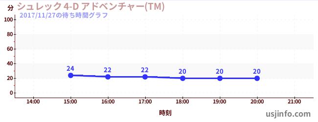 • シュレック 4-D アドベンチャー(TM)$B$N(B2017年11月27日の待ち時間