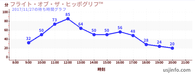 • フライト・オブ・ザ・ヒッポグリフ™$B$N(B2017年11月27日の待ち時間