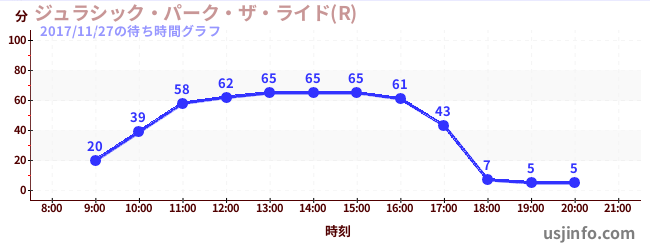 • ジュラシック・パーク・ザ・ライド(R)$B$N(B2017年11月27日の待ち時間