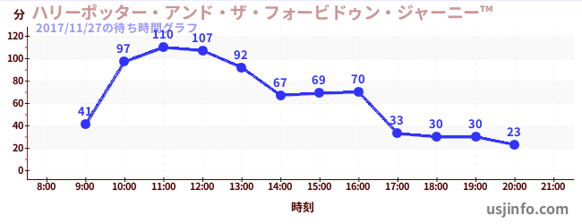 • ハリーポッター・アンド・ザ・フォービドゥン・ジャーニー™$B$N(B2017年11月27日の待ち時間