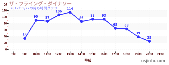 • ザ・フライング・ダイナソー$B$N(B2017年11月27日の待ち時間