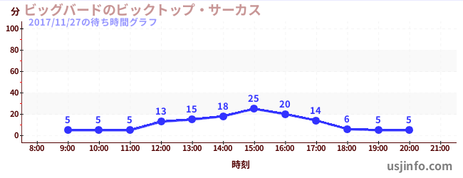 • ビッグバードのビックトップ・サーカス$B$N(B2017年11月27日の待ち時間