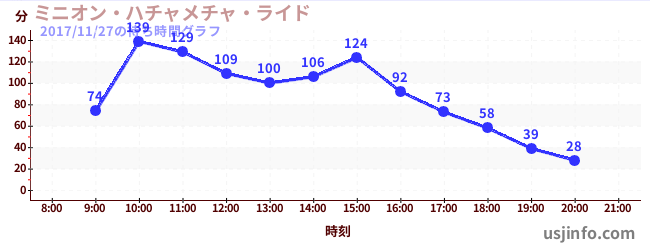 • ミニオン・ハチャメチャ・ライド$B$N(B2017年11月27日の待ち時間