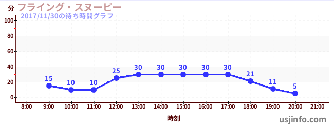 • フライング・スヌーピー$B$N(B2017年11月30日の待ち時間