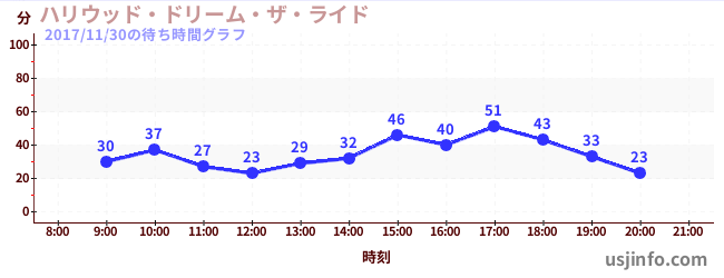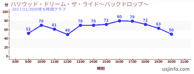 • ハリウッド・ドリーム・ザ・ライド〜バックドロップ〜$B$N(B2017年11月30日の待ち時間