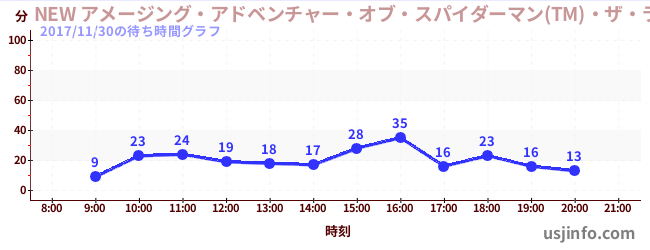 • NEW アメージング・アドベンチャー・オブ・スパイダーマン(TM)・ザ・ライド 4K3D$B$N(B2017年11月30日の待ち時間