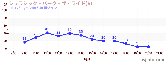 • ジュラシック・パーク・ザ・ライド(R)$B$N(B2017年11月30日の待ち時間