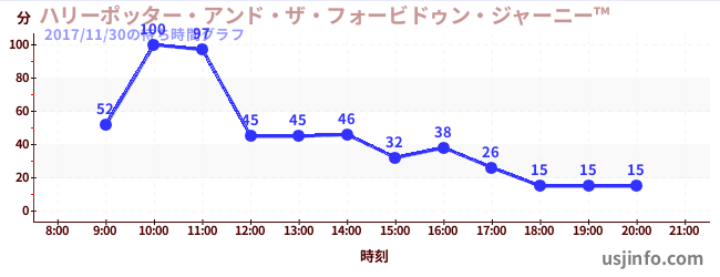 • ハリーポッター・アンド・ザ・フォービドゥン・ジャーニー™$B$N(B2017年11月30日の待ち時間