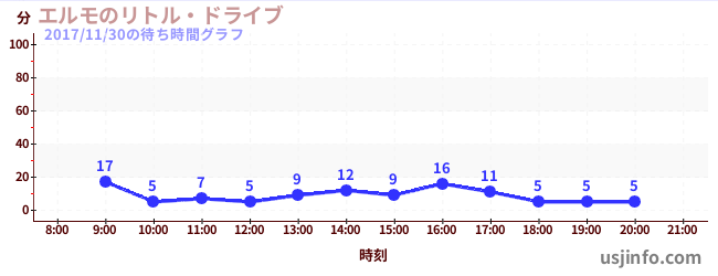• エルモのリトル・ドライブ$B$N(B2017年11月30日の待ち時間