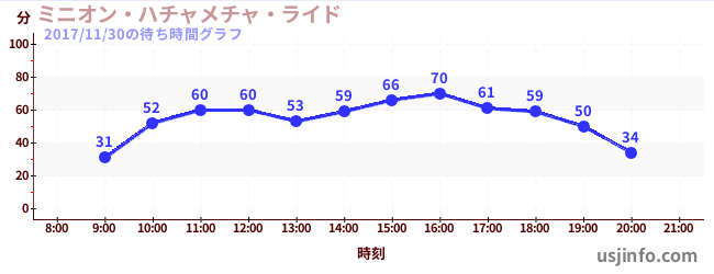 • ミニオン・ハチャメチャ・ライド$B$N(B2017年11月30日の待ち時間