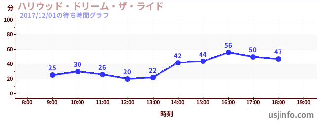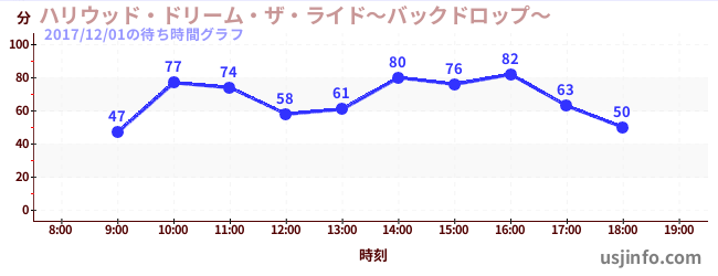 • ハリウッド・ドリーム・ザ・ライド〜バックドロップ〜$B$N(B2017年12月01日の待ち時間