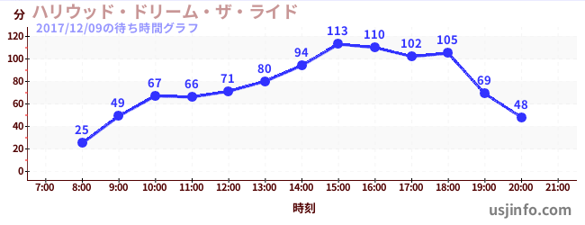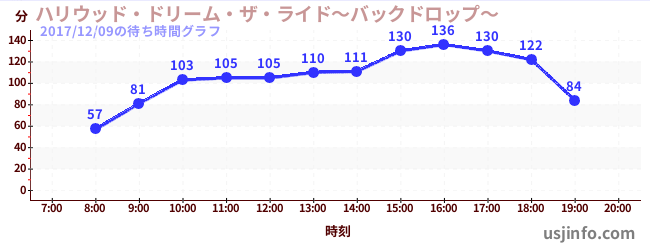 • ハリウッド・ドリーム・ザ・ライド〜バックドロップ〜$B$N(B2017年12月09日の待ち時間