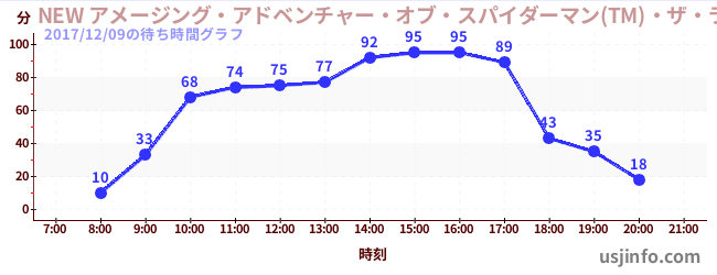 • NEW アメージング・アドベンチャー・オブ・スパイダーマン(TM)・ザ・ライド 4K3D$B$N(B2017年12月09日の待ち時間