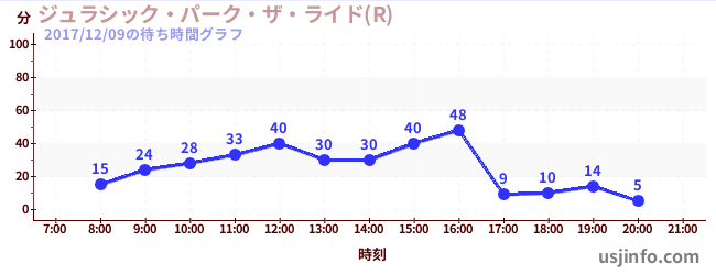 • ジュラシック・パーク・ザ・ライド(R)$B$N(B2017年12月09日の待ち時間