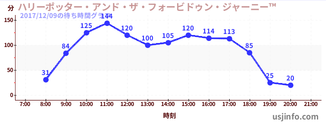 • ハリーポッター・アンド・ザ・フォービドゥン・ジャーニー™$B$N(B2017年12月09日の待ち時間