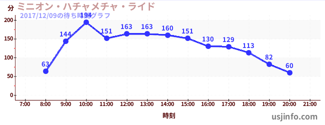 • ミニオン・ハチャメチャ・ライド$B$N(B2017年12月09日の待ち時間